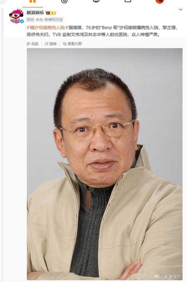 据港媒,76岁的“Benz哥”许绍雄被曝病危入院,黎芷珊、苗侨伟夫妇、TVB监制文伟鸿及林志华等人前往医院升融配资,众人神情严肃。